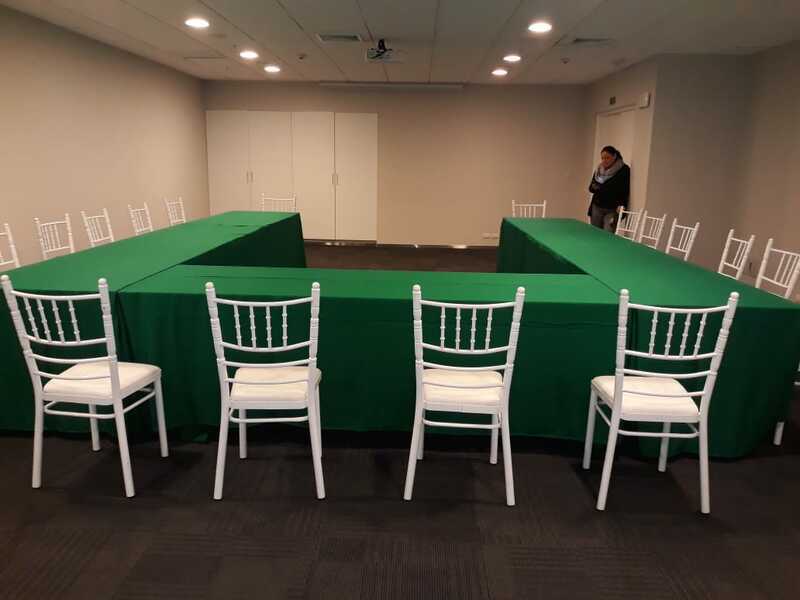 Alquiler de sillas plásticas y metálicas, puffs, salas lounge, mesas y mantelería.